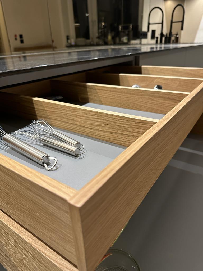 Schubkästen und Einteilung aus Eichen-Echtholz Funier